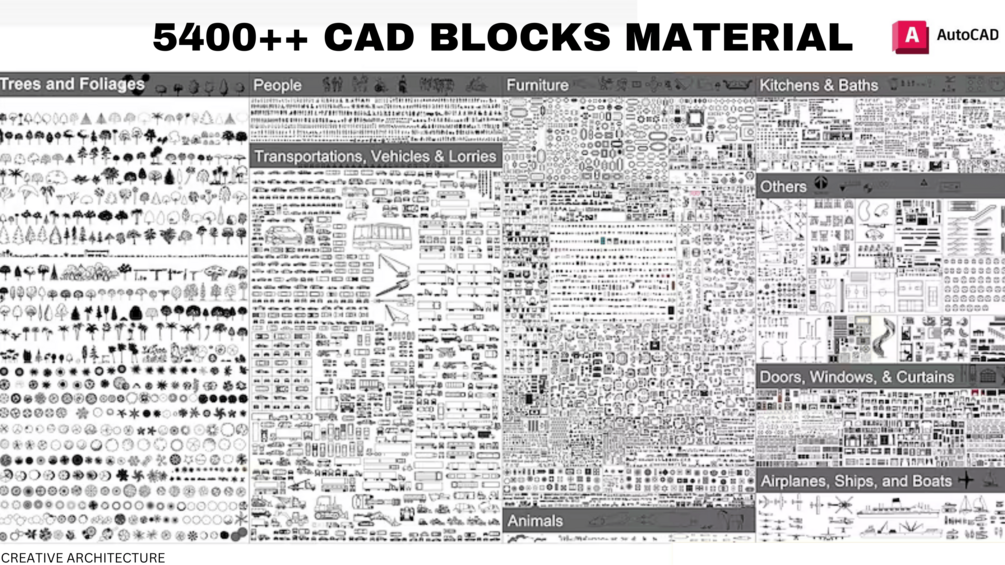 5400 CAD BLOCK MATERIALS for Architectural Design is a collection of CAD MATERIALS for CAD design programs like AutoCAD with OVER 5400 CAD BLOCK to choose from. for architects and professional designer including students To design using AEC program, there are comprehensive CAD Block such as Tree and Plant, Transportation, Kitchens & Baths and many more.